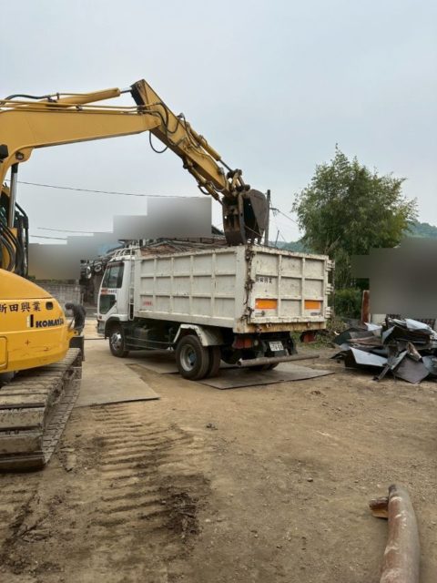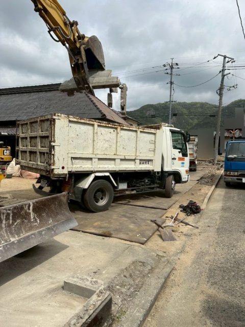 基礎部分の解体と残った外溝壁の解体が全て終わりましたら、廃棄物を処分場へ運搬し整地を行っていきます。