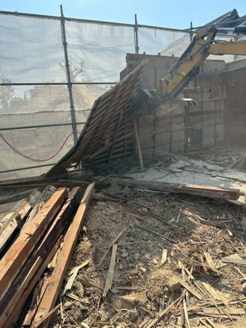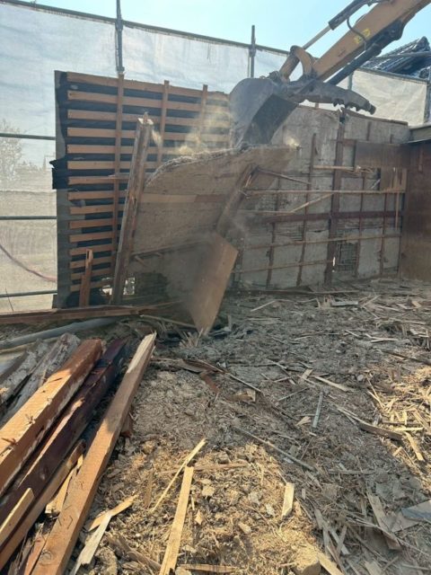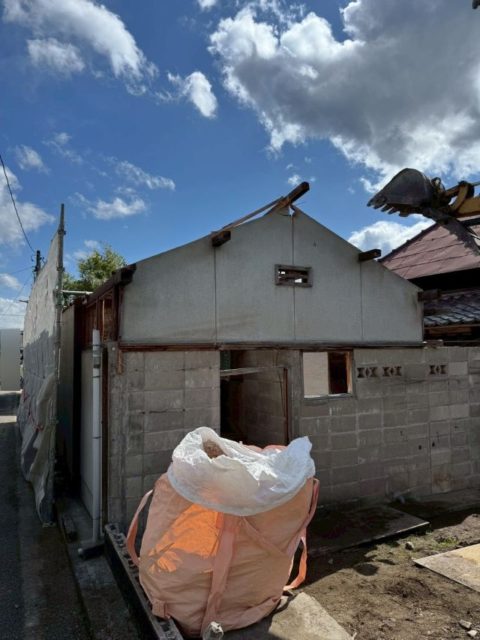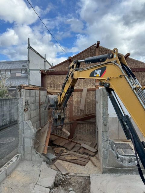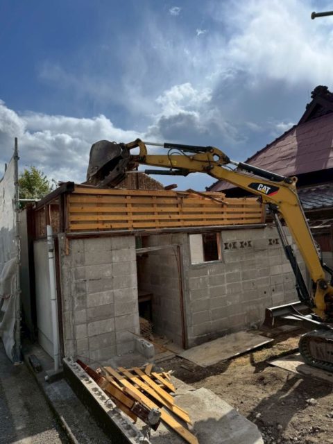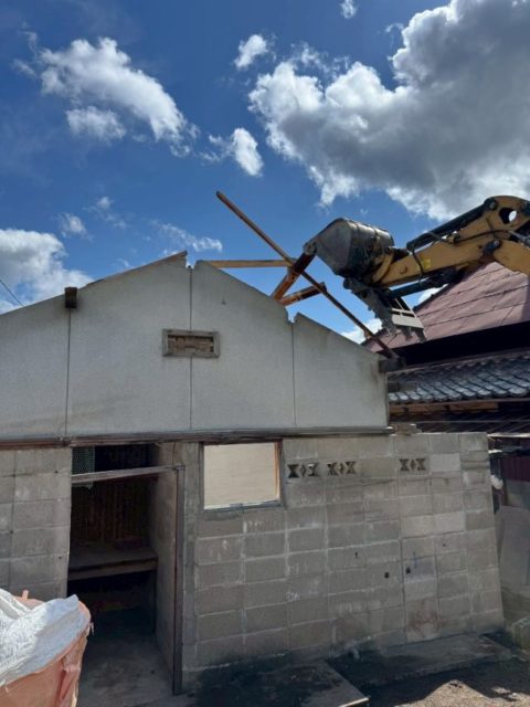 手作業での解体撤去が終わりましたら、重機を使用し倉庫の解体に入ります。