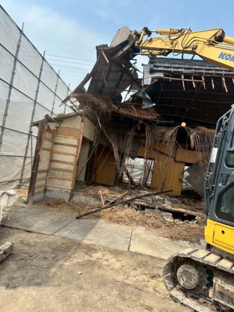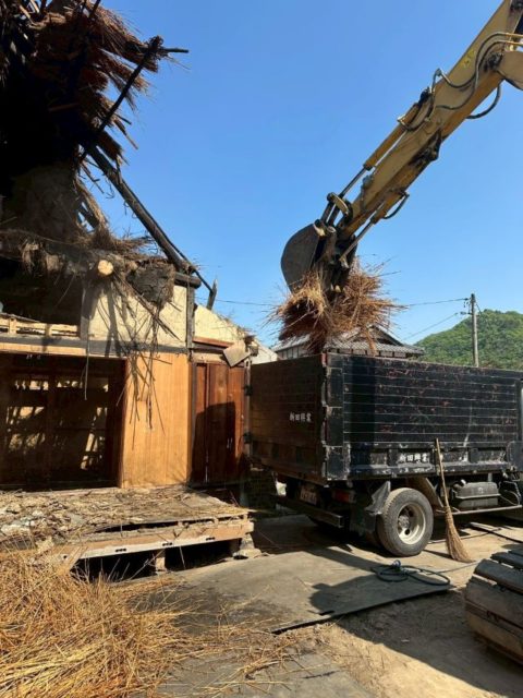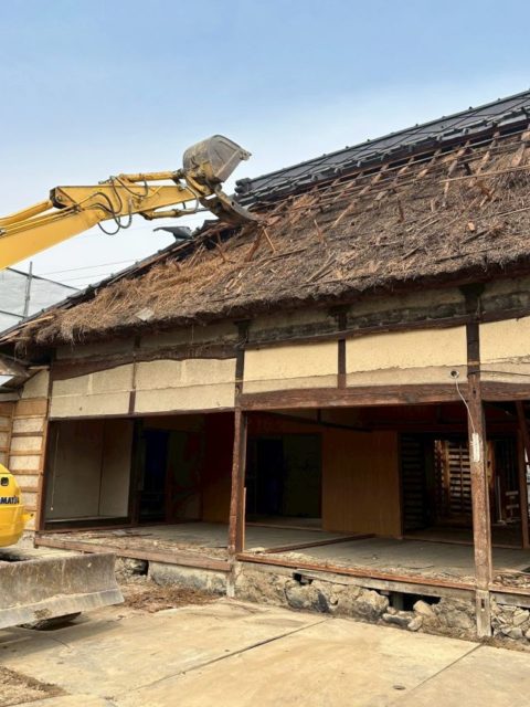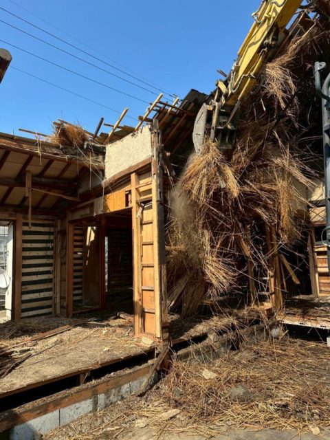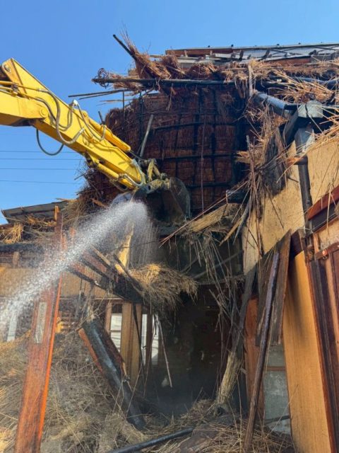 倉庫解体で出た産業廃棄物全てをそれぞれの処分場へ運搬しましたら、続いて藁葺家屋・木造家屋の解体を行っていきます。