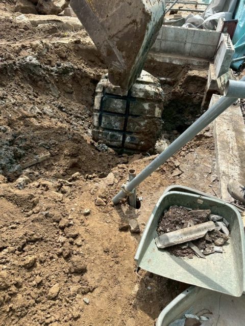 躯体の解体と発生した廃棄物をそれぞれの処分場へ運搬しましたら、基礎部分を解体していきます。