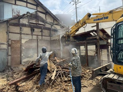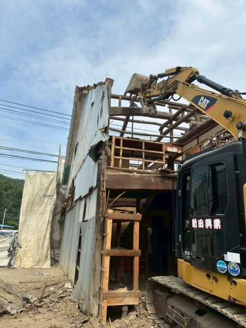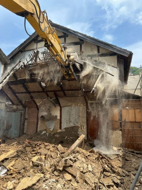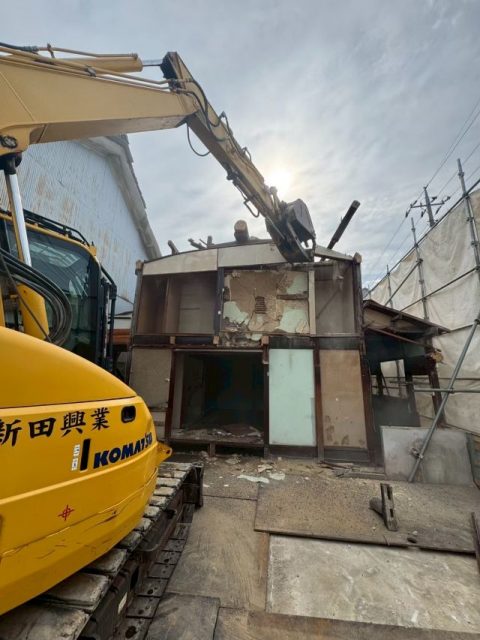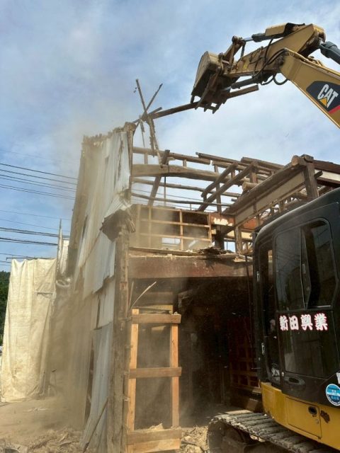 手作業での解体が済みましたら、重機を使用し、躯体解体に入ります。