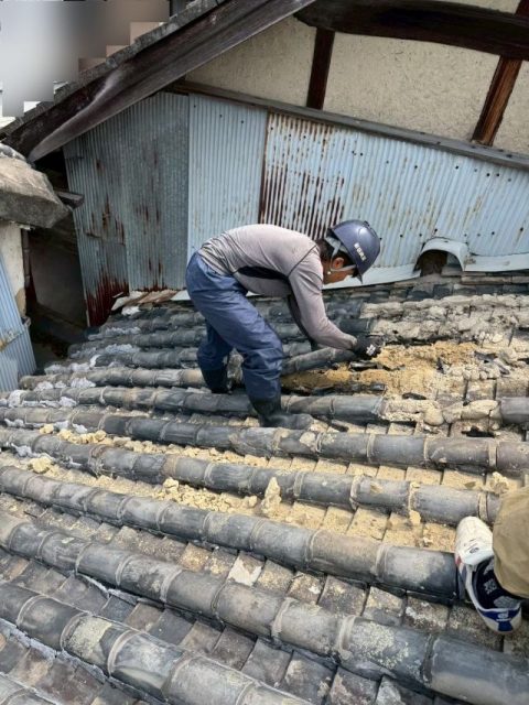 次に屋根瓦や屋根材、内装材や外装材等を手作業で解体し撤去していきます。