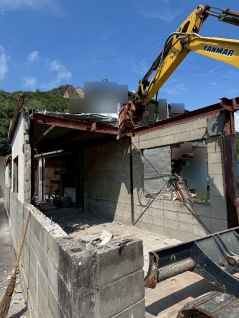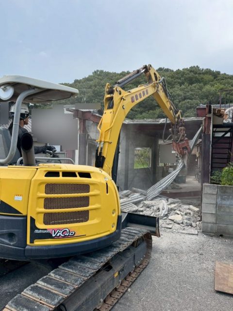 重機を使用し躯体を解体していきます。