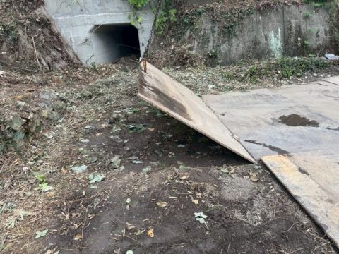 鉄板を敷設し、仮設道を作っていきます。
