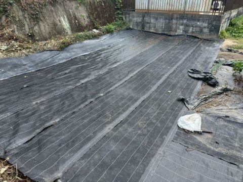敷地内、畑部分の防草シート等を撤去していきます。